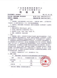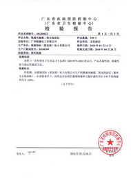 | 廣東省產品質量監督檢驗中心-銀康二氧化鈦殺菌檢測報告 檢測表明:金色葡萄球菌的殺菌率在24小時內高達99.74% 大腸埃希氏菌的殺菌率在24小時內高達99.60% |
