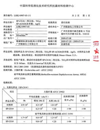 | 廣東省產品質量監督檢驗中心-銀康納米銀檢測報告 檢測表明:金色葡萄球菌的殺菌率在24小時內高達99.74% 大腸埃希氏菌的殺菌率在24小時內高達99.60% | ||