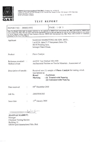 馬來西亞SIRIM-銀康二氧化鈦的檢測報告
