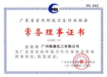 我公司于2010年4月25日獲得《廣東省室內環境衛生行業協會常務理事證書》,正式成為廣東省室內環境衛生行業協會常務理事單位。