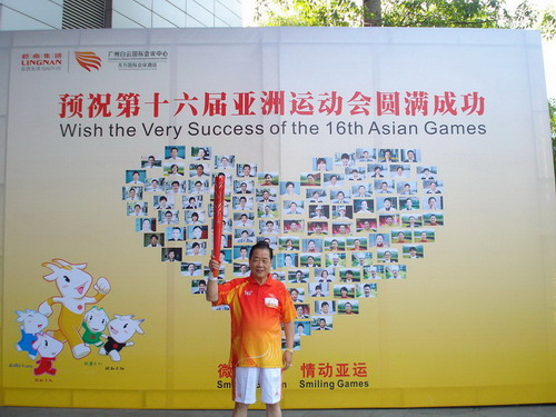 我司董事長何國才先生(新加坡廣東會館會長、廣東省海外交流協(xié)會理事、廣州市海外交流協(xié)會理事)榮為亞運會火炬手,于2010119日上午9點在越秀公園參加了亞運會火炬?zhèn)鬟f。以下是何國才先生參加亞運會火炬?zhèn)鬟f的相關(guān)圖片: