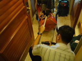 銀康處理前先測量風速                     拆下清洗過濾網的柵格