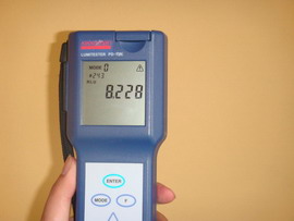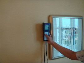 銀康處理前測得表層的細菌數為8,228RLU                檢測墻壁表層細菌數