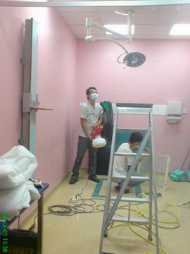 客戶名稱:新加坡國立大學醫院National University Hospital 項目名稱:表層處理 地址:5 Lower Kent Ridge Road Singapore 119074 電話:(65) 6779 2777工程現場圖片: 工程人員正在進行室內表層處理 在金屬表層噴涂銀康納米銀和光觸媒