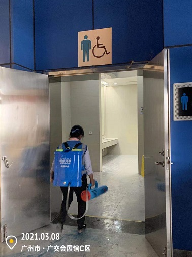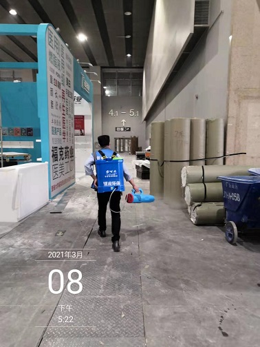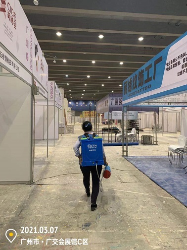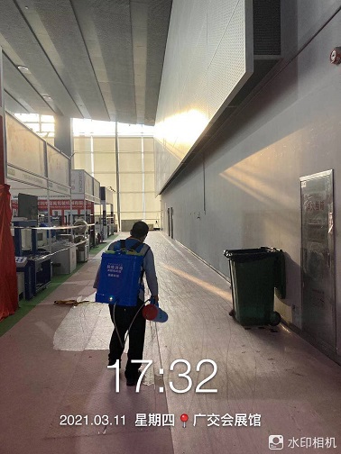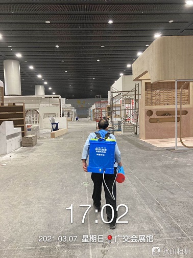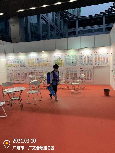 2021年3月7-12日,銀康公司承包琶洲國際會展中心A、B、C區共28個館-廣州國際美博會防疫消毒服務。以下是進行防疫消毒服務的相關圖片: