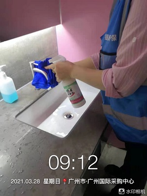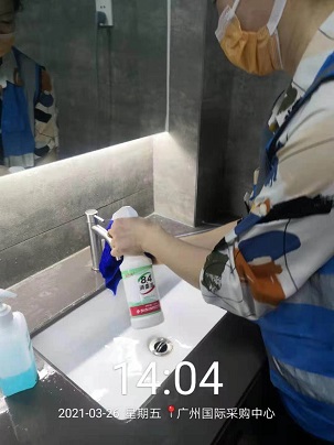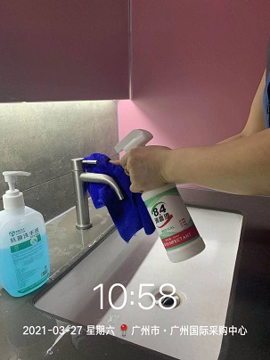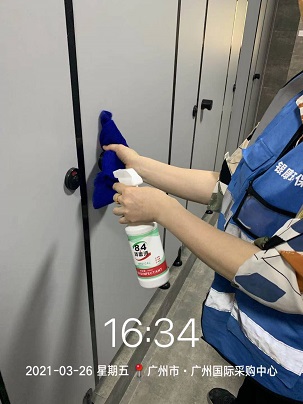 2021年3月23日-28日,銀康承包廣州國際采購中心-第十九屆醫療器械展保潔及防疫消毒服務,以下是保潔及消毒服務的相關圖片: