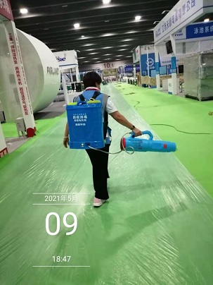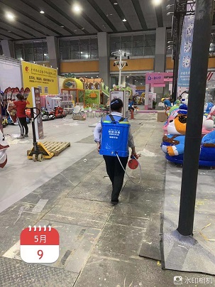 2021年5月8日-12日,銀康公司承包2021亞洲樂園及景點博覽會、亞洲VR&AR博覽會-展館防疫消毒服務。以下是關于防疫消毒的相關圖片: