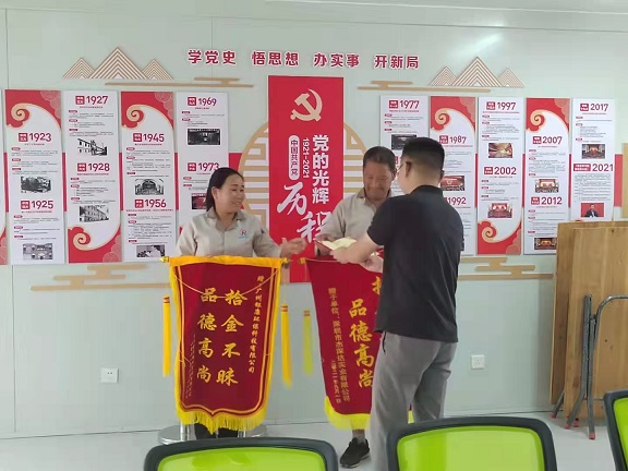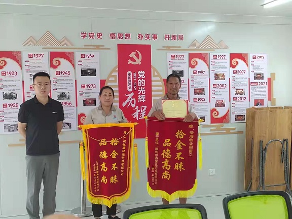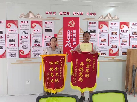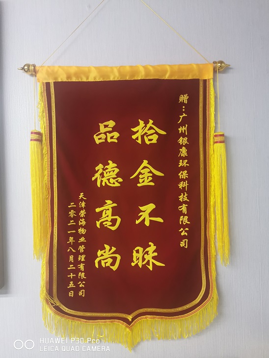 廣州廣交會四期工地-銀康保潔服務(wù)部收到拾金不昧旗幟