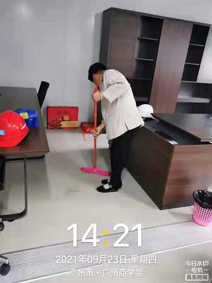 2021年9月22日,銀康入駐位于中新廣州知識城的廣州商學院教學樓擴建項目-中建八局項目部-日常保潔及會務(wù)接待綜合服務(wù)。